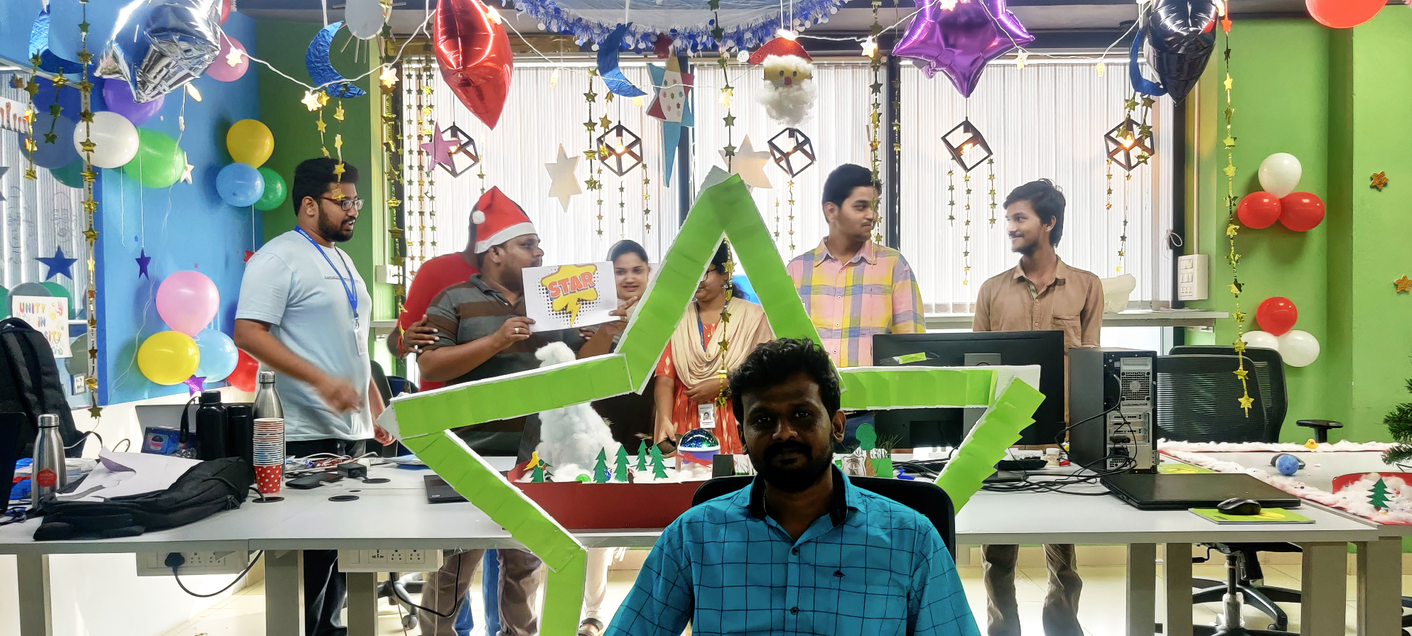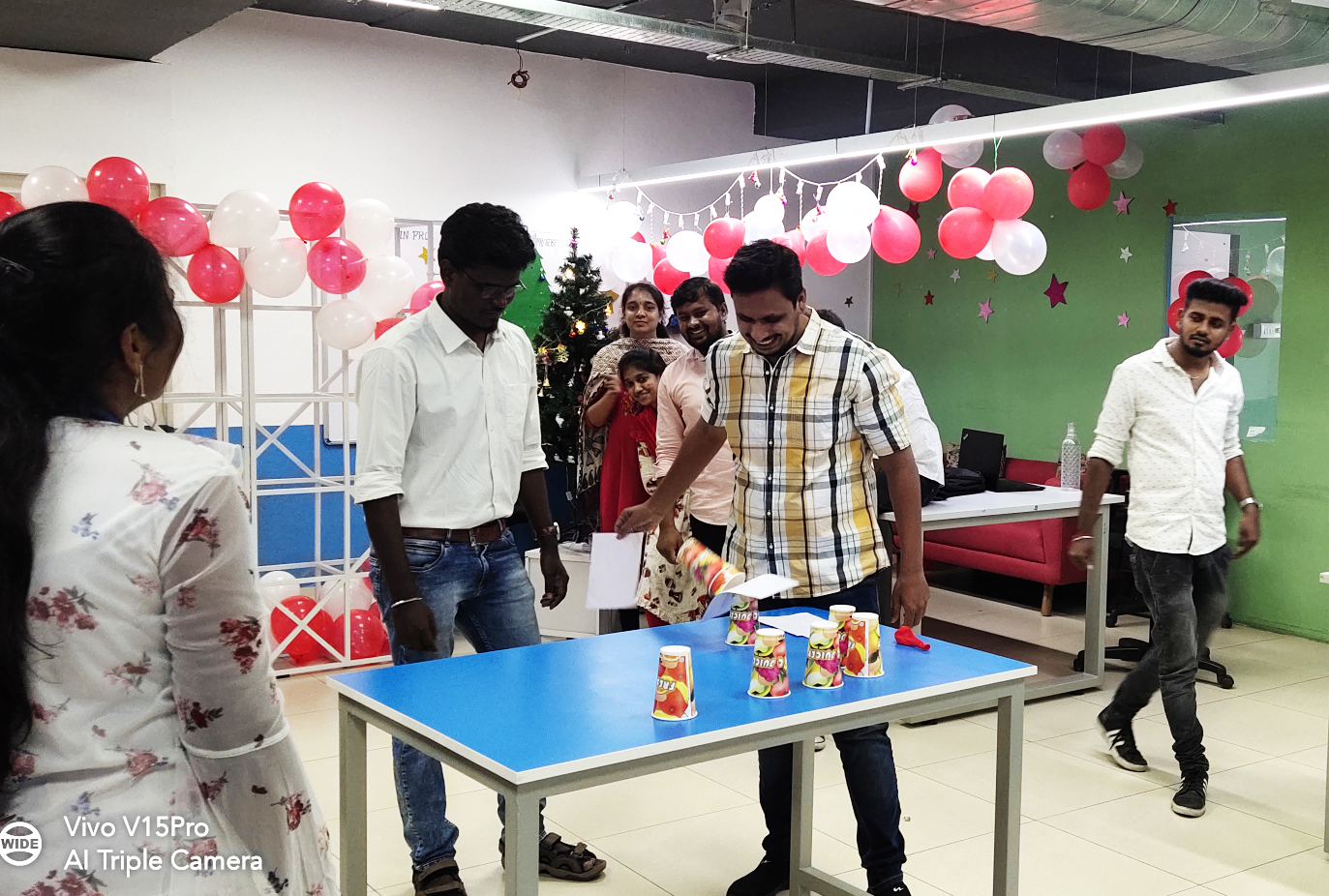 The five teams -Star, Plum Cake, Santa’s, Snow Ball & Jingle Bells came together, played, laughed and had great fun. Teams decorated their work space and on Christmas had a lot of fun games – Blow the Cup and Caught, tilt a Cup and Balloon pyramid. Team had a very happy Christmas celebrations.